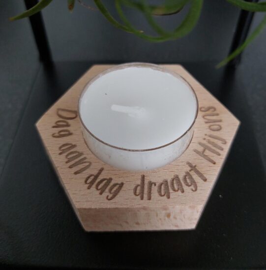 Kaarsenstandaard rustiek – Dikke knuffel voor jou (incl. mini stompkaars)