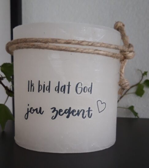 Windlicht S – Ik bid dat God jou zegent – Ivoor