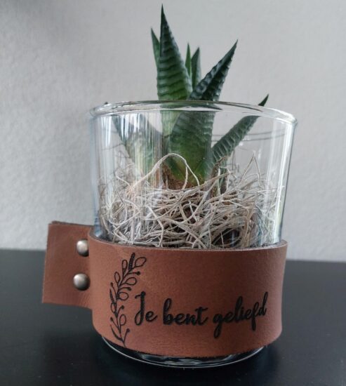 Cilinder Vaas met Leren band bruin – Je bent geliefd