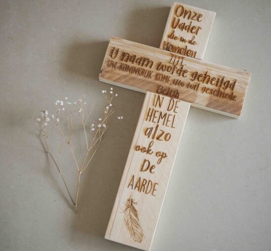 Houten Kruis “Want God had de wereld zo lief..” M Blank