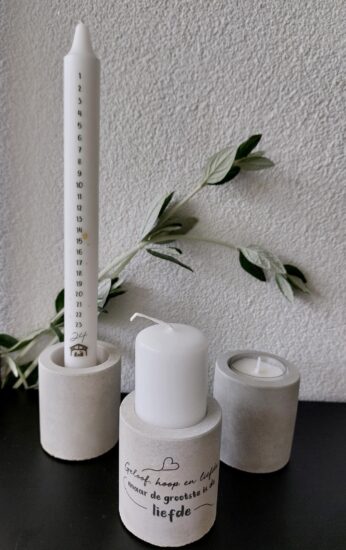 Kaarsenstandaard rustiek – Dikke knuffel voor jou (incl. mini stompkaars)