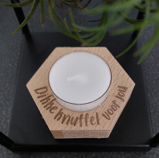 Kaarsenstandaard rustiek – Dikke knuffel voor jou (incl. mini stompkaars)