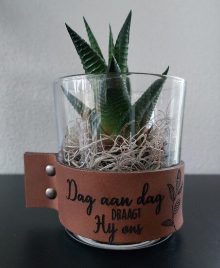 Windlicht S ‘Ik ben met je, alle dagen’, Grijs