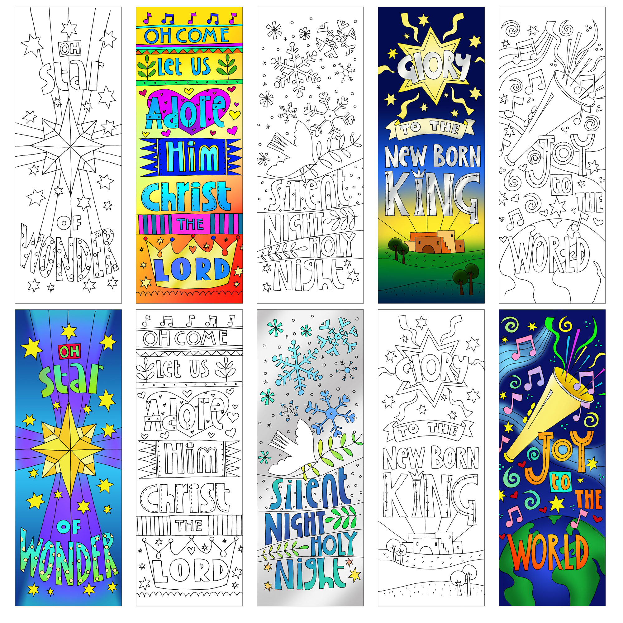 10 different colouring bookmarks, 68x195mm, based on the colouring book, Christmas. CMBM20