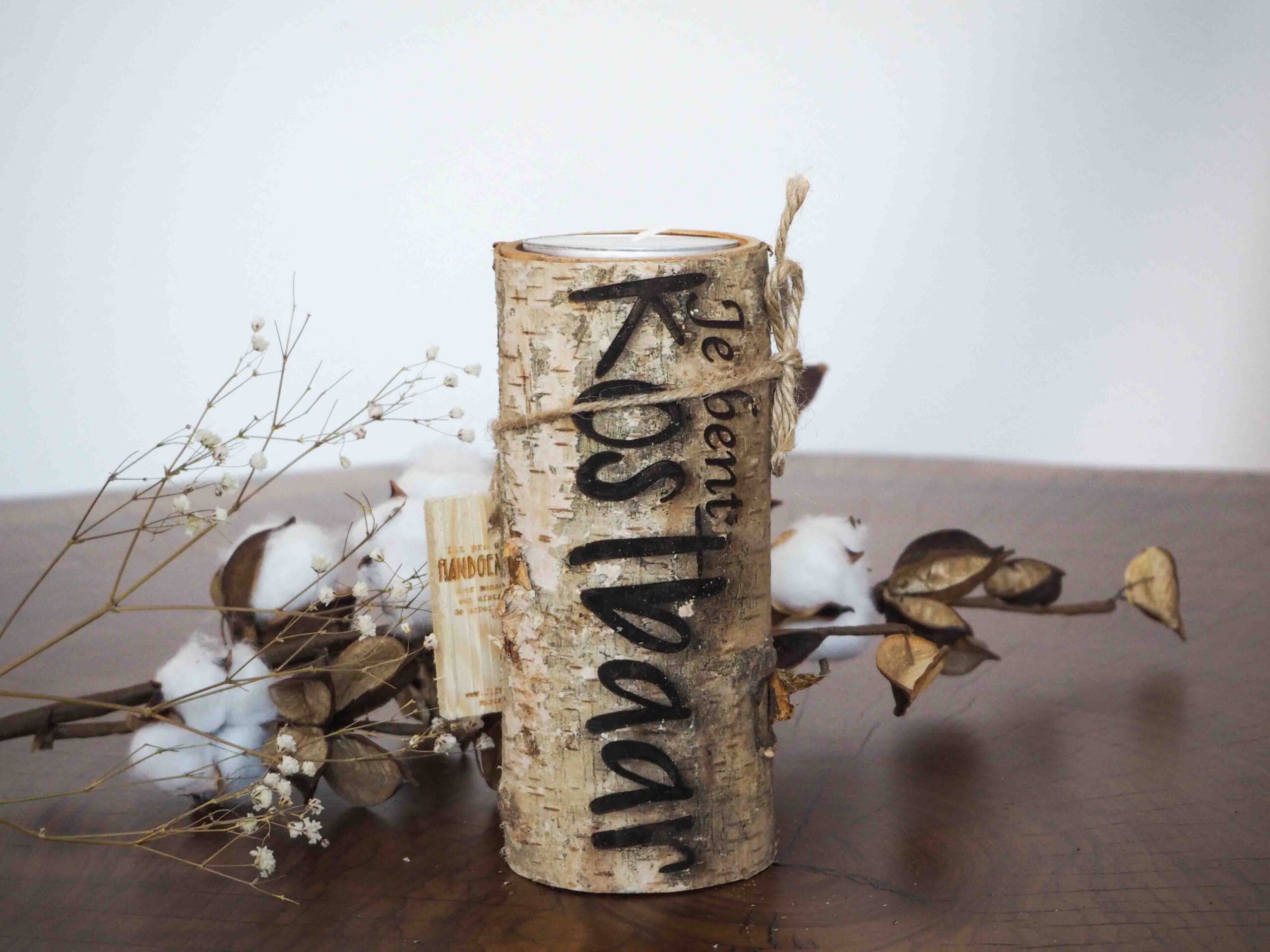 Boomstam L met gravure Je bent kostbaar – met kaars (vervangbaar)