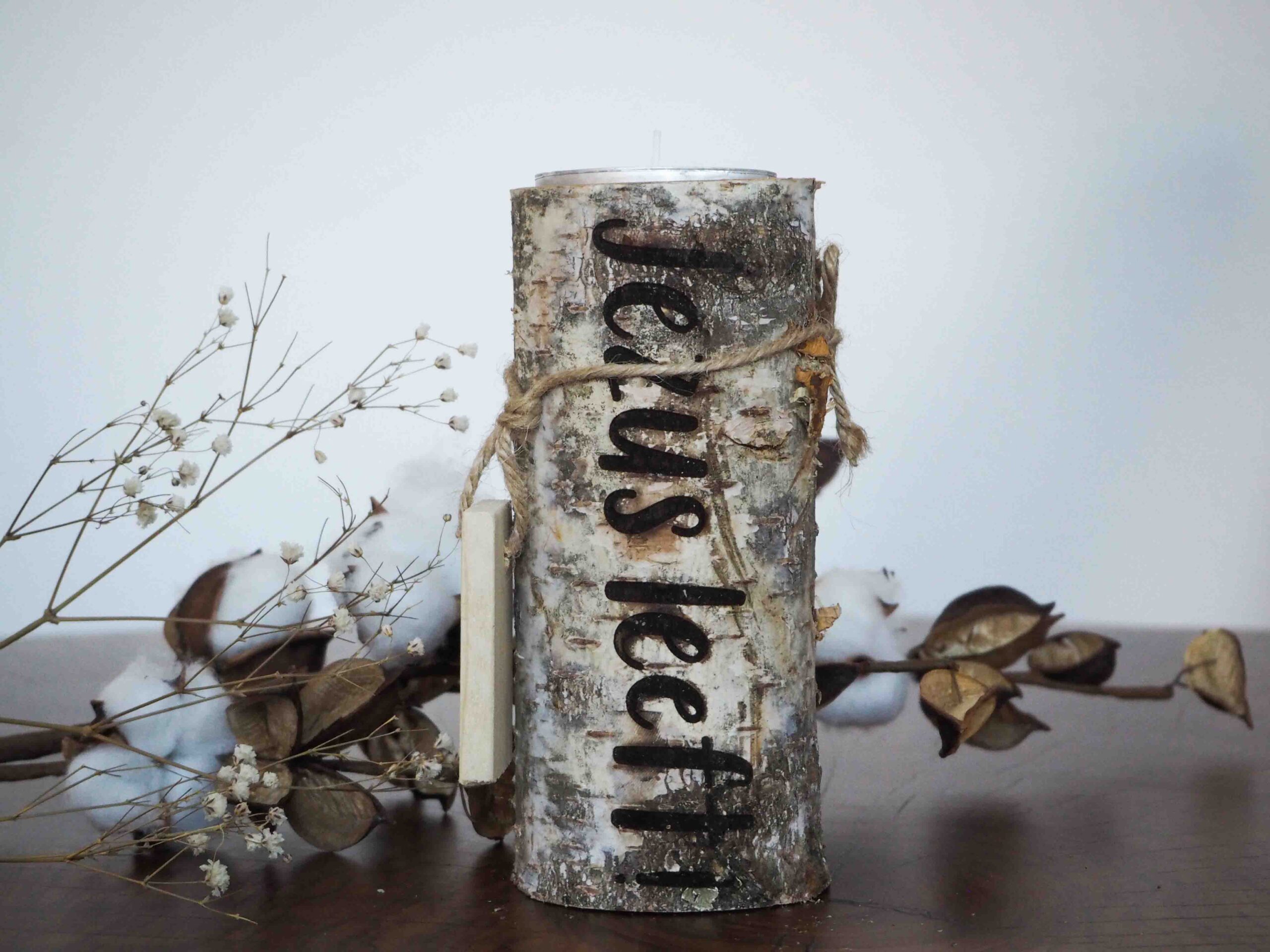 Boomstam L met gravure Jezus leeft – met kaars (vervangbaar)