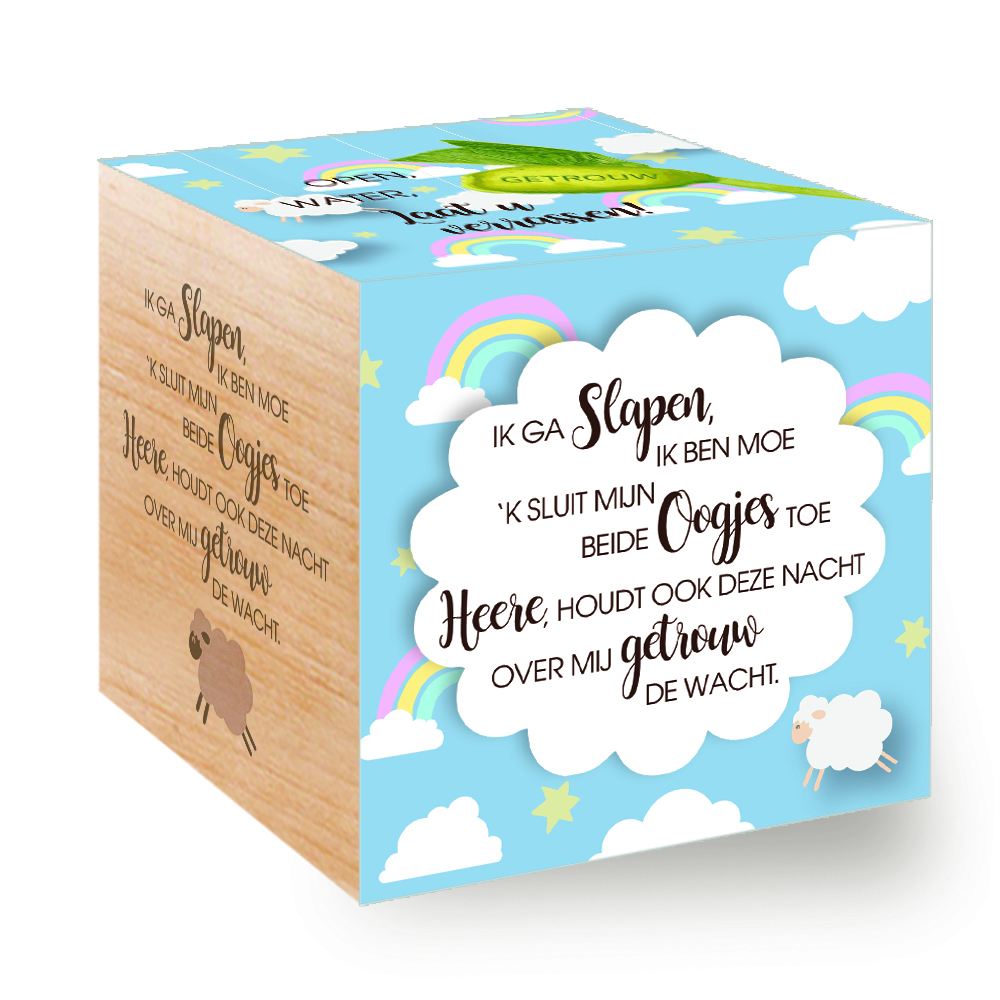 Deze unieke groei kubus is een blijvende herinnering met een verrassende boodschap voor elk moment. Jiftach heeft 10 verschillende groei kubussen met een Christelijk boodschap gecategoriseerd in: Geboorte, Belijdenis, Lofprijzing en Bemoedinging.