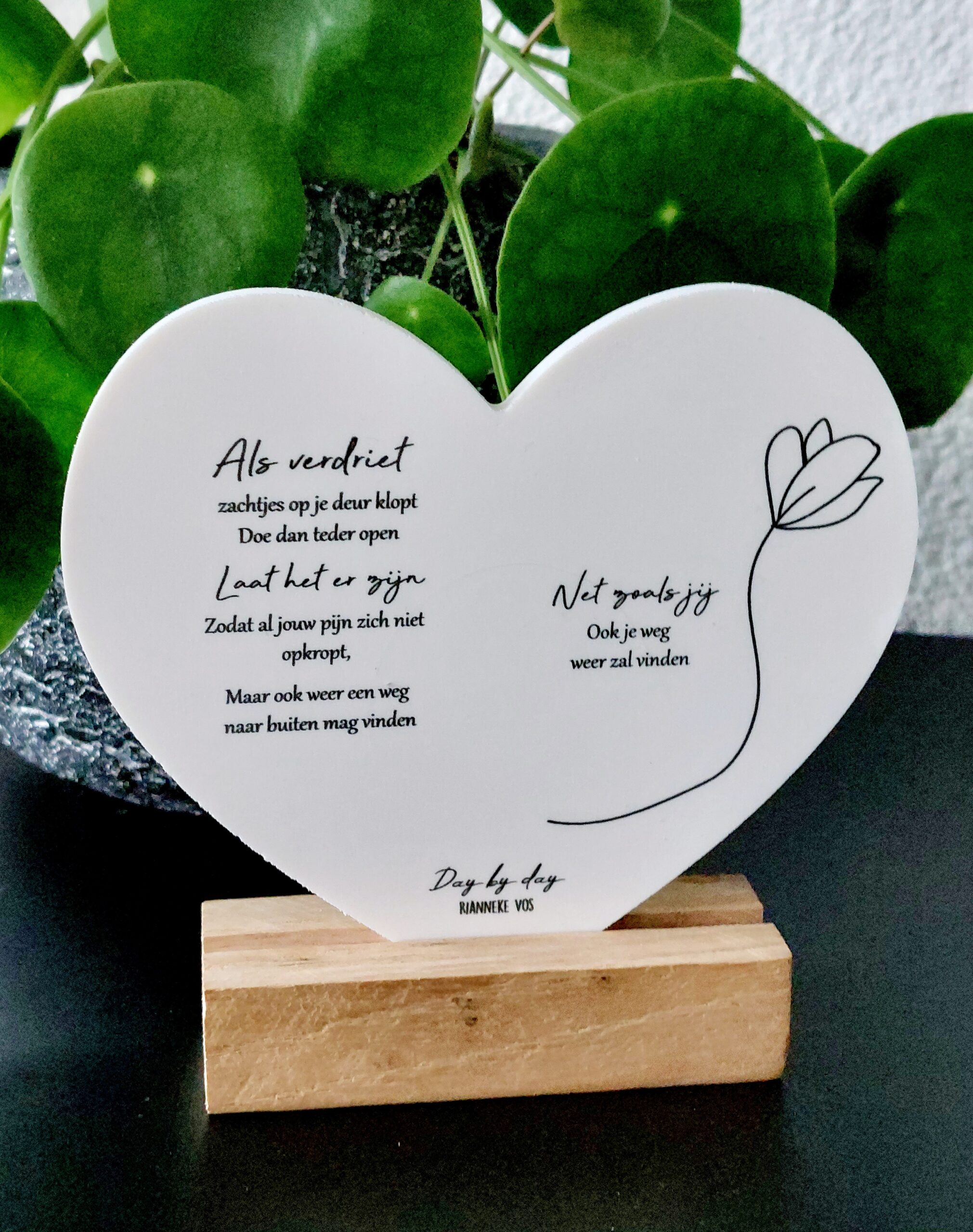 Geprint hart met mooie tekst. Dit hart wordt geleverd inclusief standaard.