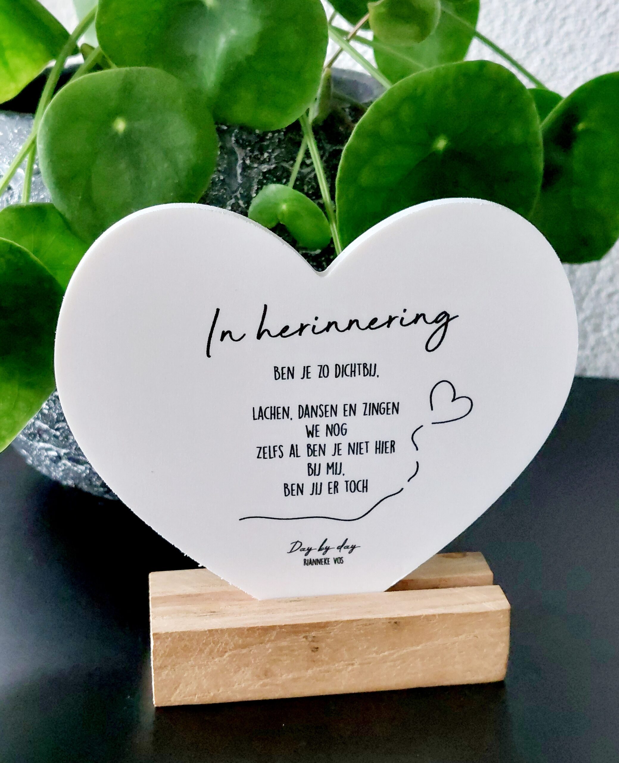 Geprint hart met mooie tekst. Dit hart wordt geleverd inclusief standaard.