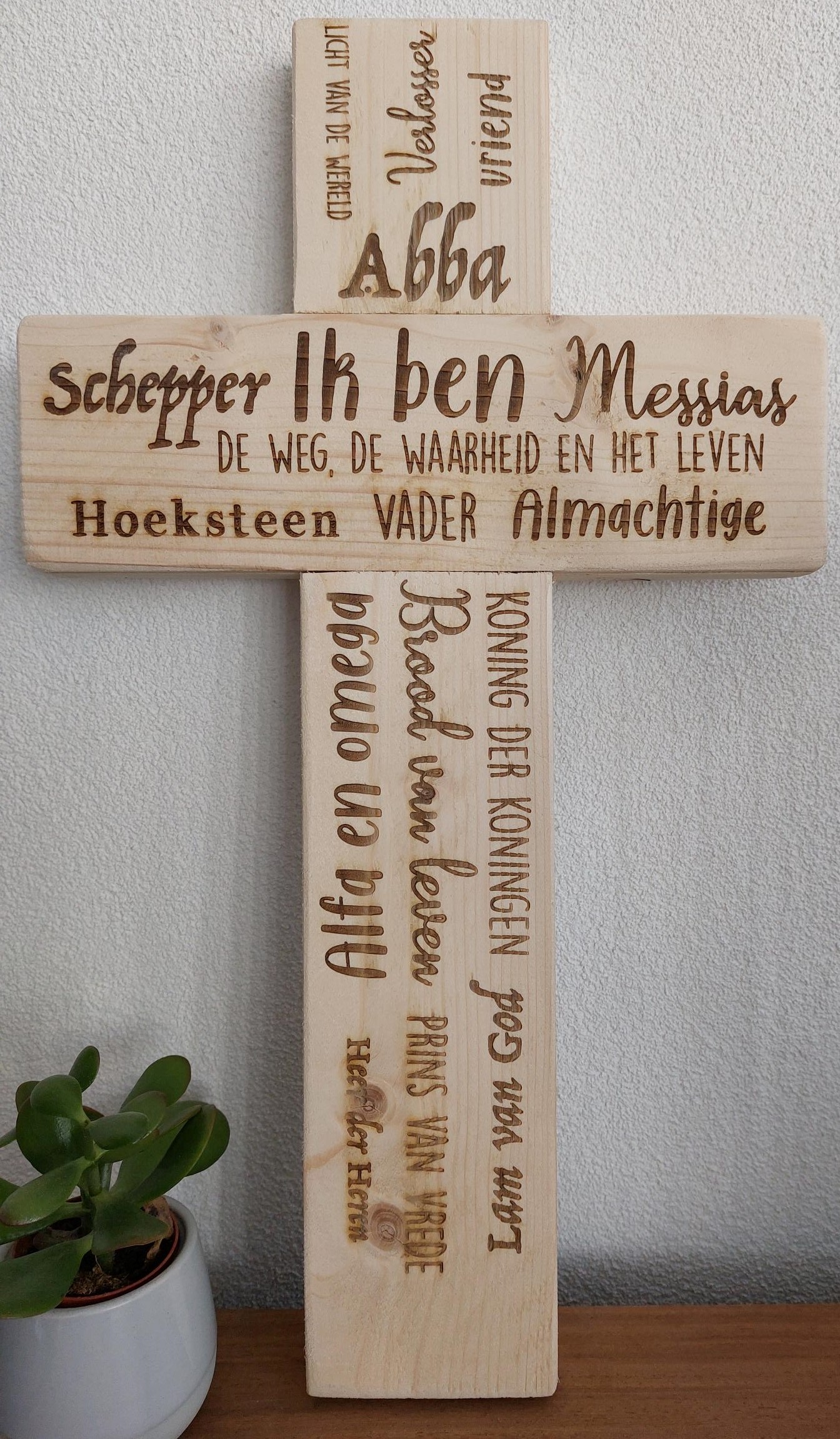 Prachtig kruis met namen van God. Dit product wordt mede gemaakt door mensen met een afstand tot de arbeidsmarkt.