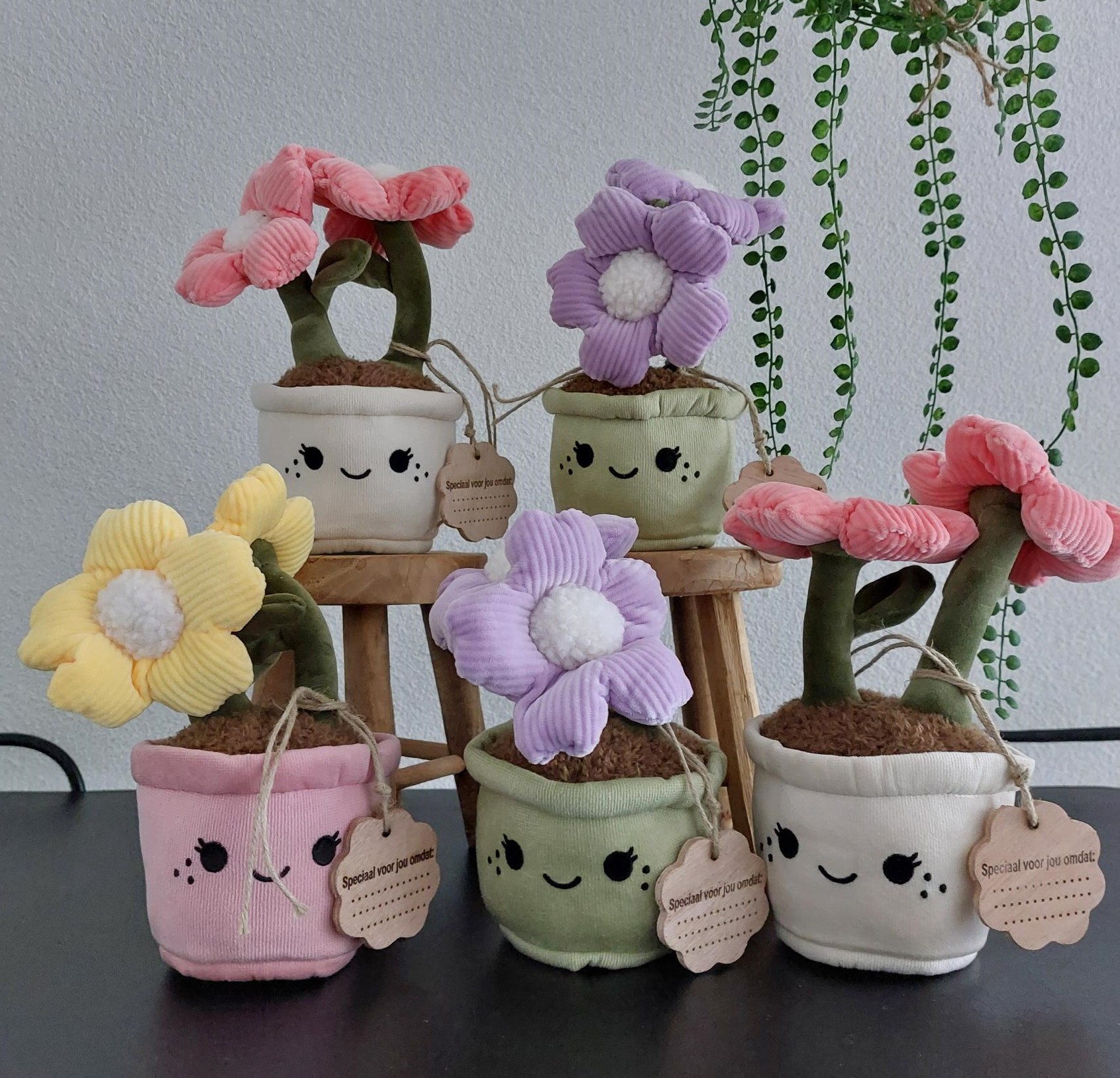 In elke ruimte is wel plaats voor deze leuke knuffelplant! Leuke knuffelbloem met label waarop je een boodschap kan schrijven! Let op! Consumentadviesprijs per stuk is € 11,75