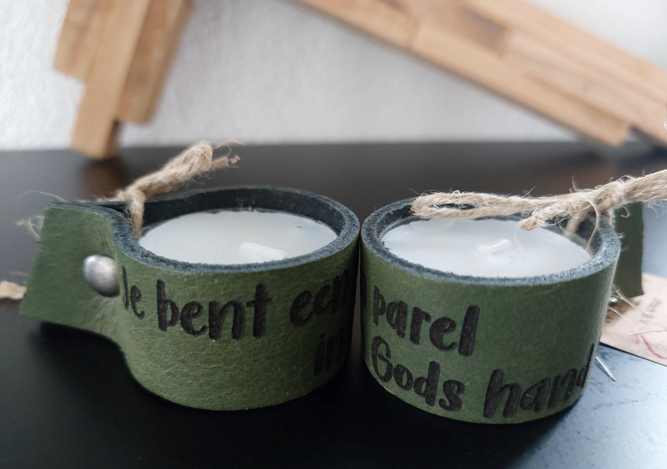 Leren waxinelichtjeshouder Groen Je bent een parel in Gods hand (set van 4)