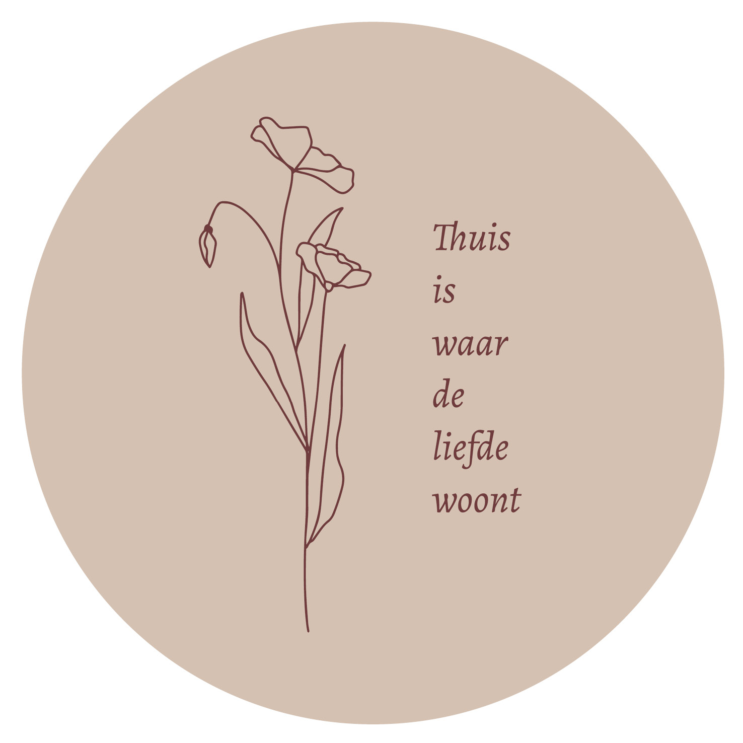 Geprinte muurdecoratie in trendy kleuren met sprekende tekst of symbool.