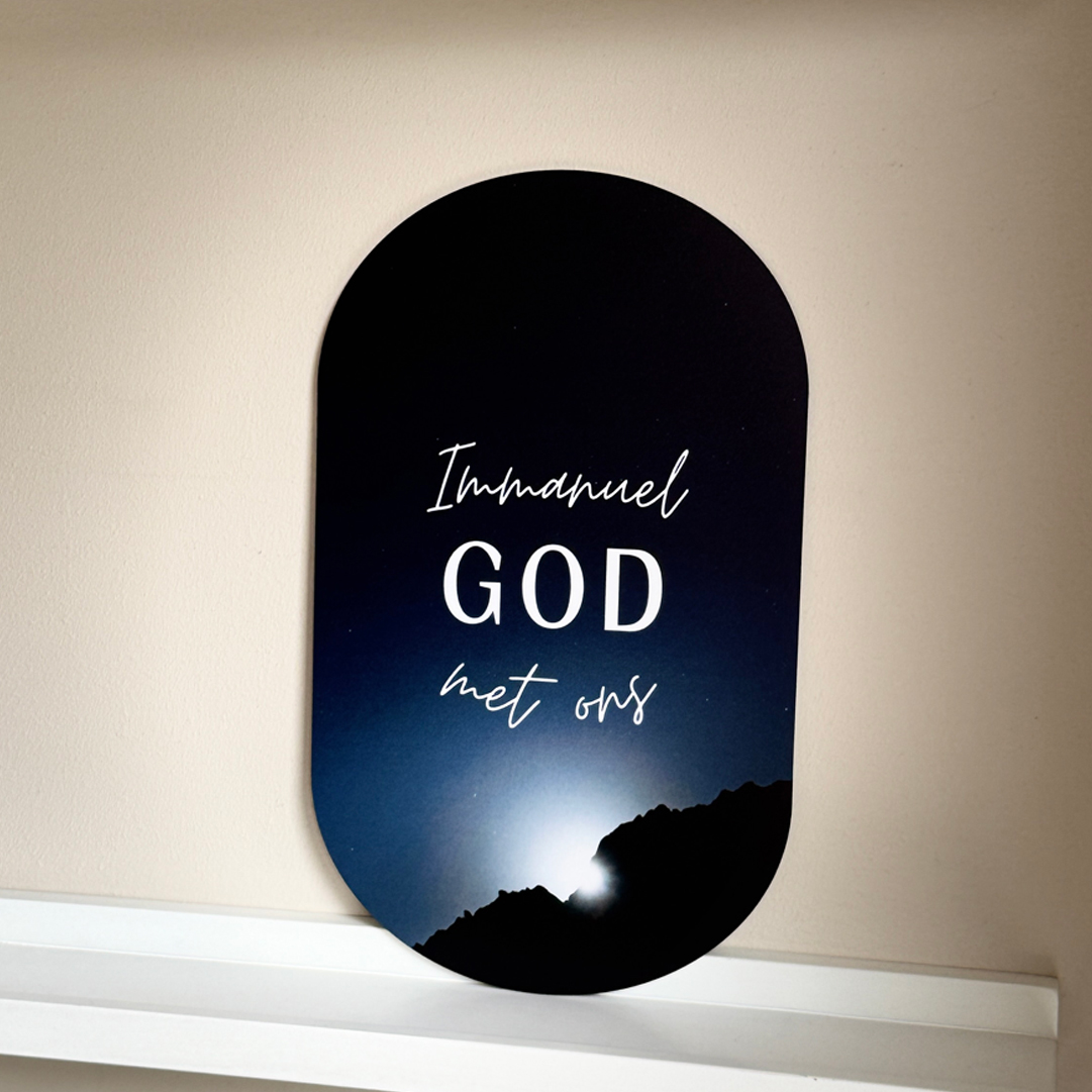 Geprinte muurdecoratie in trendy kleuren met sprekende tekst of symbool.
