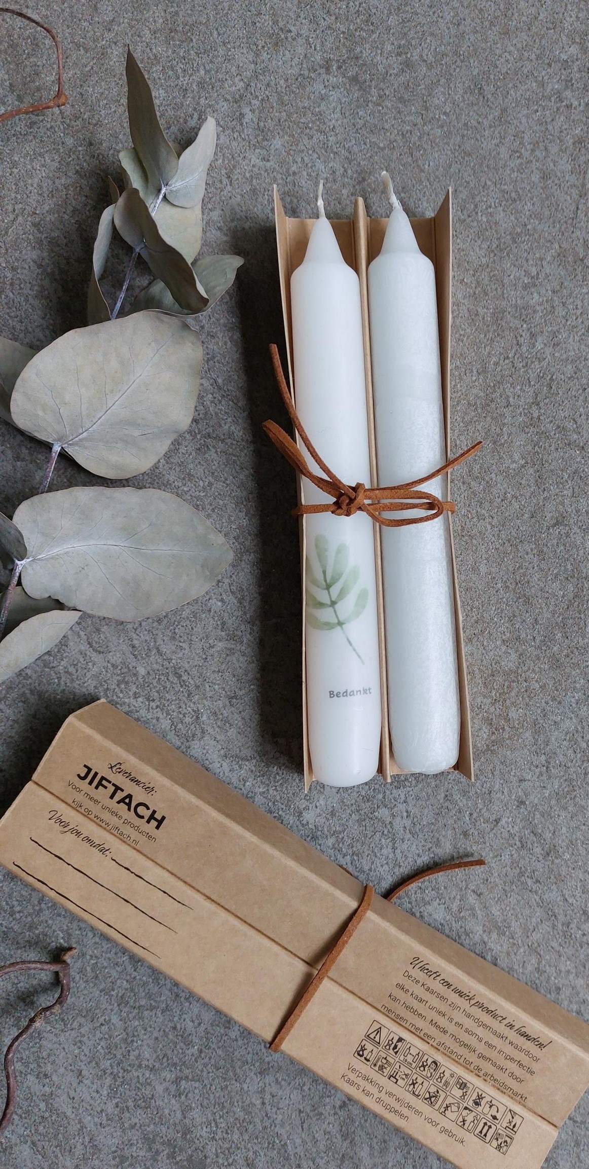 U heeft een uniek product in handen! Deze kaarsen zijn handgemaakt waardoor elke kaars uniek is en soms een imperfectie kan hebben. Mede mogelijk gemaakt door mensen met een afstand tot de arbeidsmarkt! Mocht u de set dinerkaarsen weg willen geven dan kunt u op de achterzijde nog wat lieve woorden kwijt!