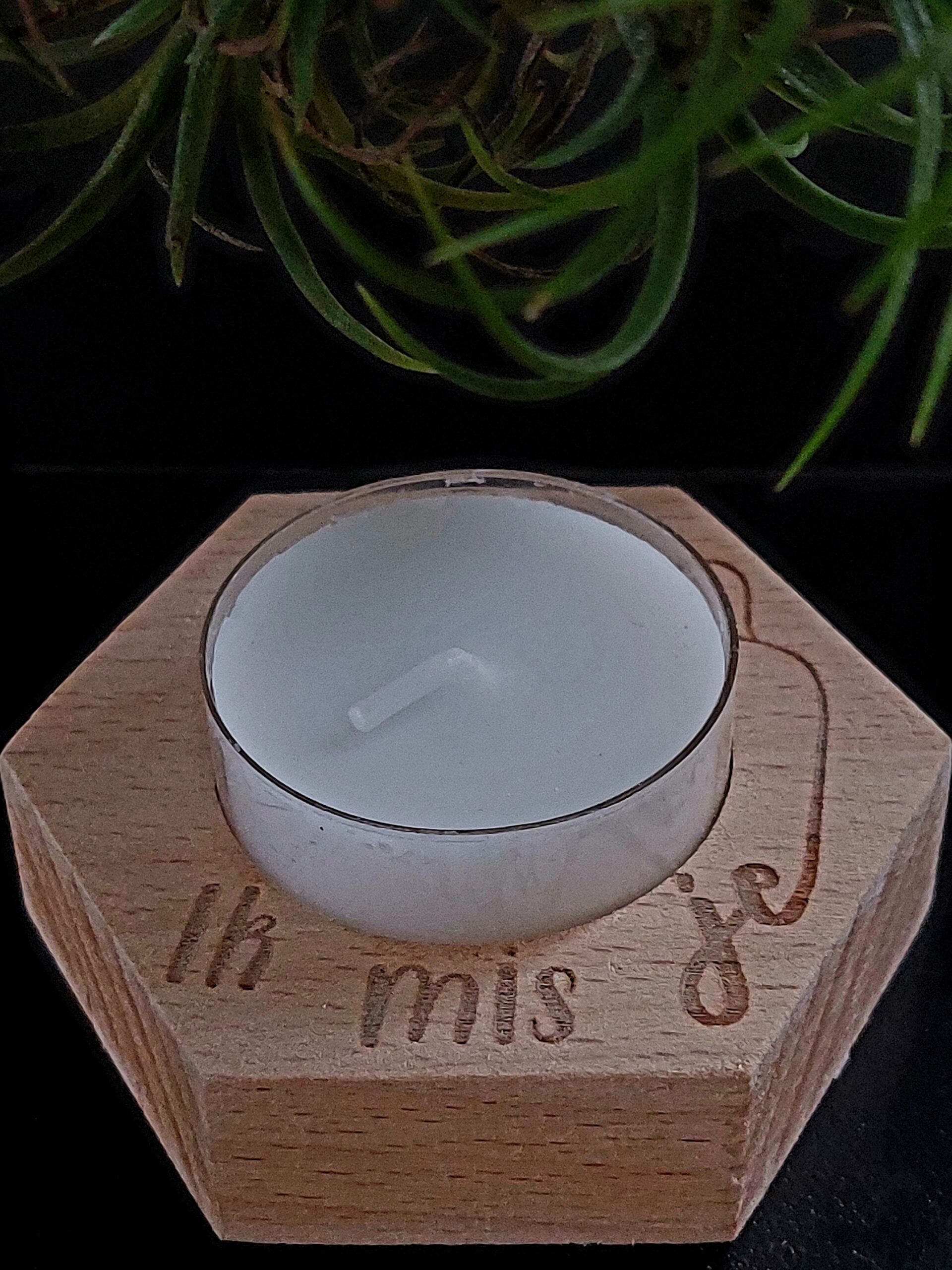 Nordic houder met waxinelichtje. De tekst is in het hout gegraveerd. Hand gemaakt en mede mogelijk gemaakt door mensen met een afstand tot de arbeidsmarkt!