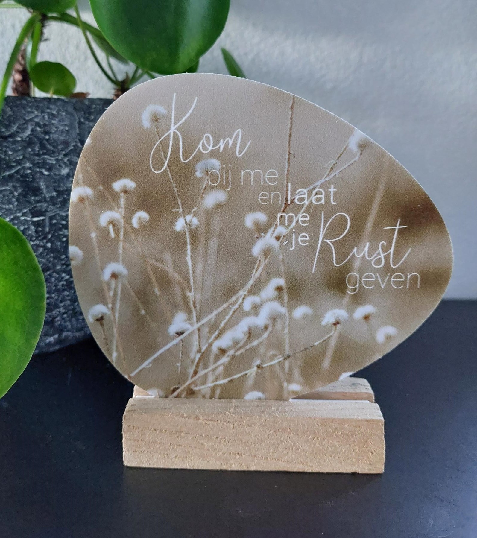 Geprint rotsje met mooie tekst. Dit rotsje wordt geleverd inclusief standaard. Een passend cadeau voor ieder moment!