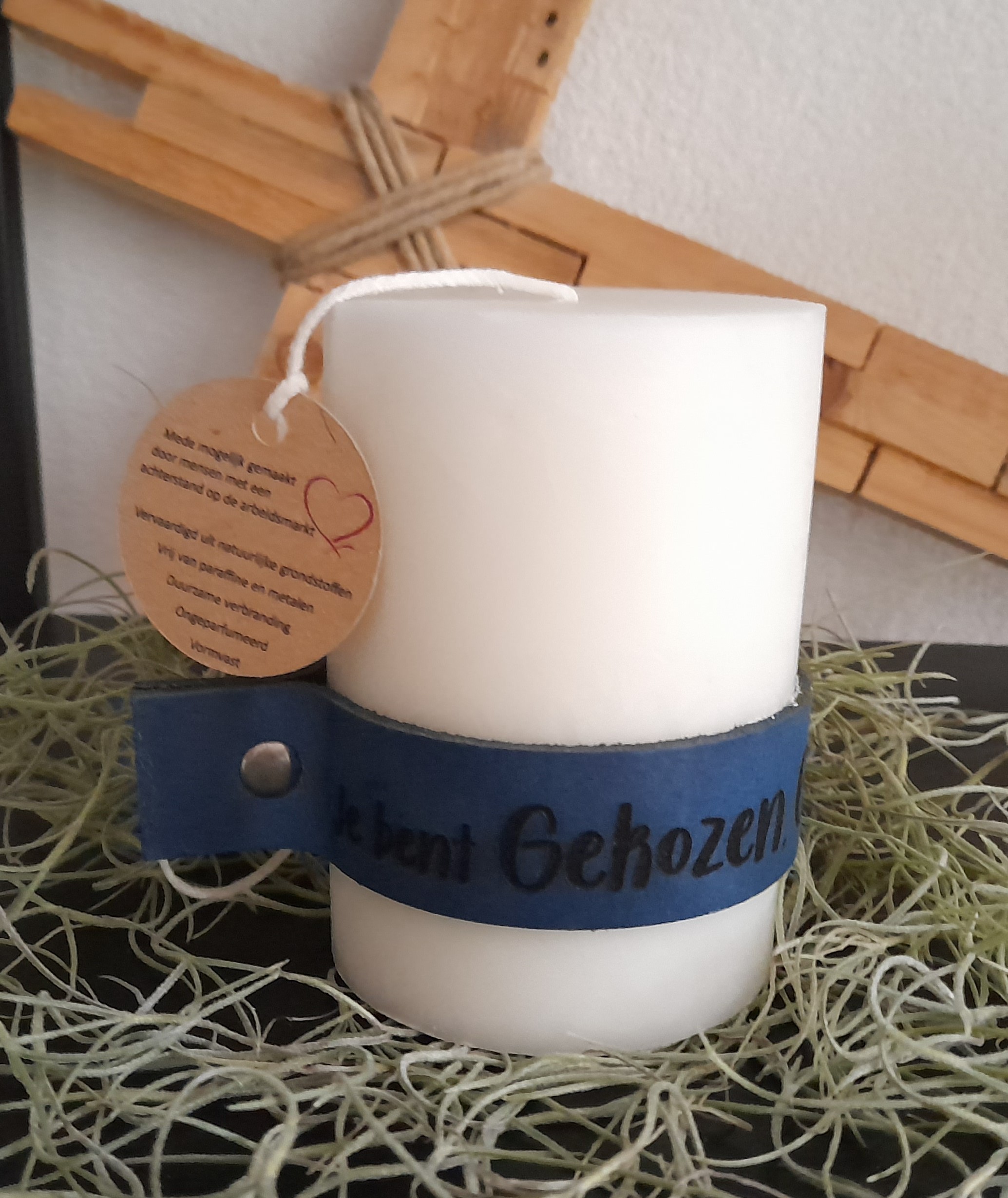 Hand gemaakt, Mede mogelijk gemaakt door mensen met een afstand tot de arbeidsmarkt, Vervaardigd uit natuurlijke grondstoffen, Vrij van parrafine en metalen, Duurzame verbranding, Ongeparfumeerd, Vormvast.
