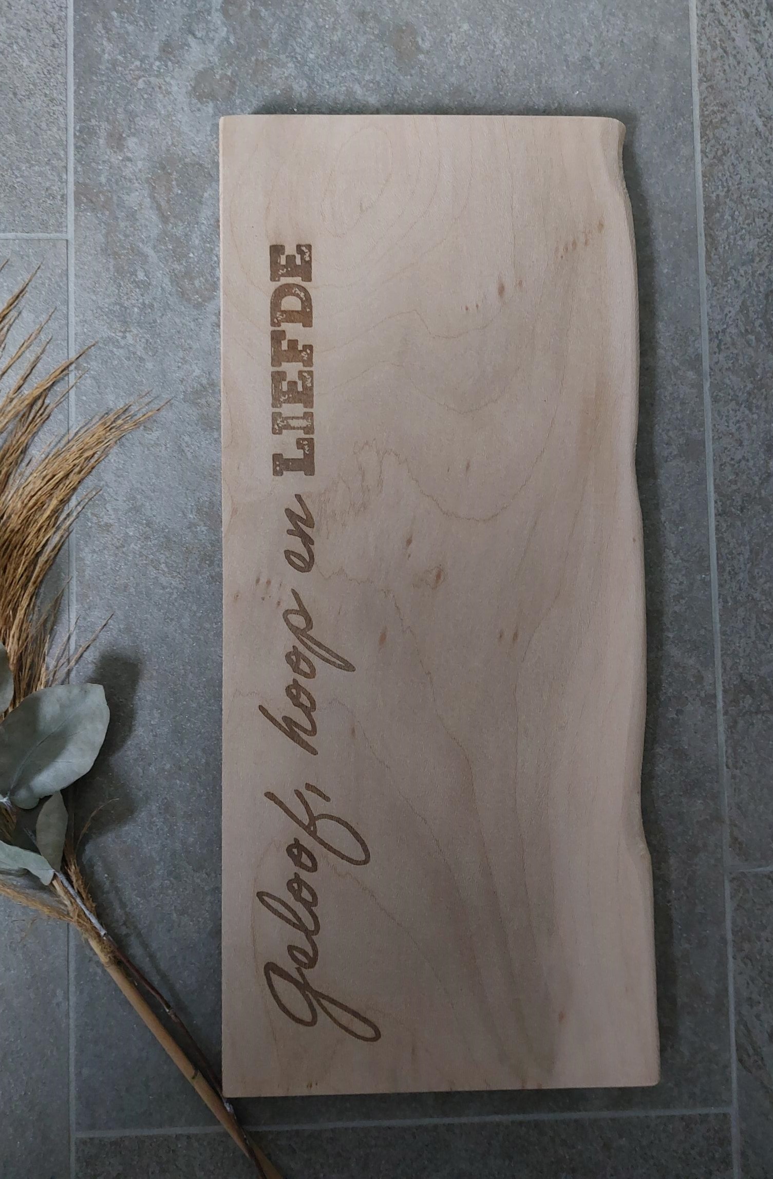 Mooie stevige snijplank met de prachtige tekst! Elke snijplank is rustiek, waardoor uniek! Gemaakt door mensen met een afstand tot de arbeidsmarkt.