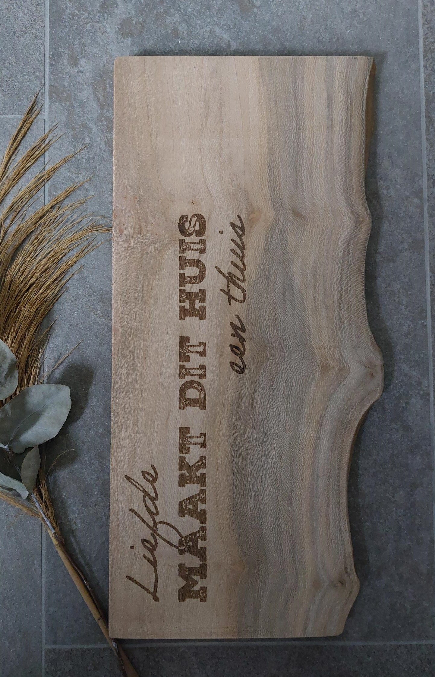 Mooie stevige snijplank met de prachtige tekst! Elke snijplank is rustiek, waardoor uniek! Gemaakt door mensen met een afstand tot de arbeidsmarkt.