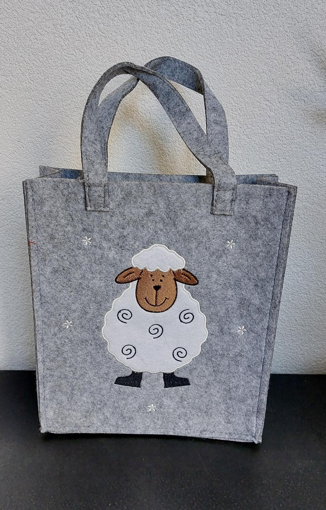 Leuk viltentasje met schaap op de voorzijde! Leuk om bijvoorbeeld te gebruiken als kerktasje!
