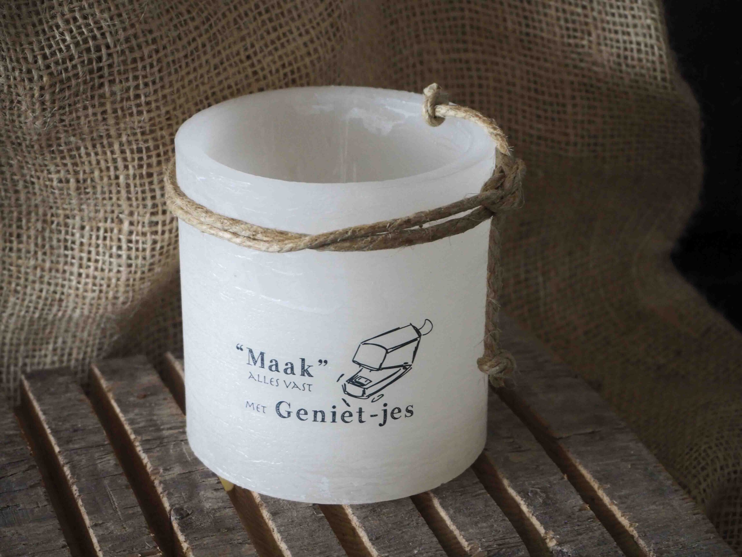 Windlicht S “Maak alles vast met genietjes” Ivoor