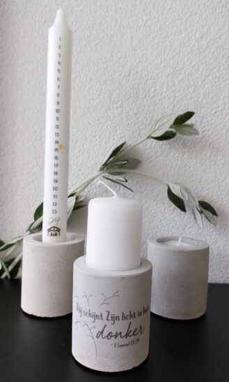 Kaarsenstandaard rustiek – Hij schijnt Zijn licht..(incl. mini stompkaars)